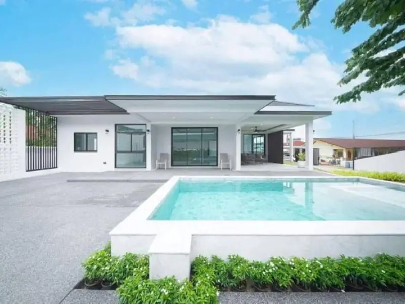 North Pattaya, near Bangkok International Hospital Foodland North Pattaya Bus terminal to Bangkok. Terminal 21. Private Pool Villa for Sale 18.9Mb with long term lease for 3 yeas plus. 4 Bedrooms, 4 Bathrooms, big land size for 210 Twah (840 sqm) and interior for 400 sqm, Parking inside property area for 6-8 Cars can park.
