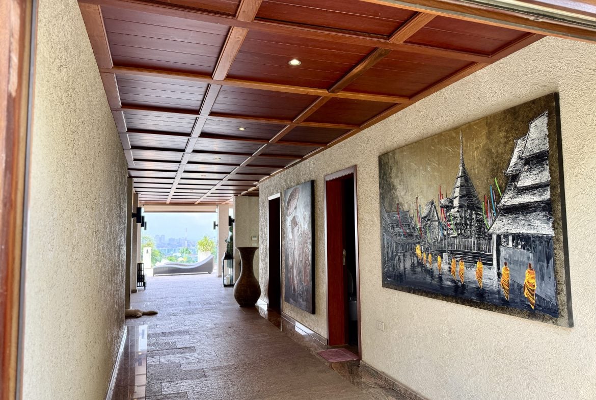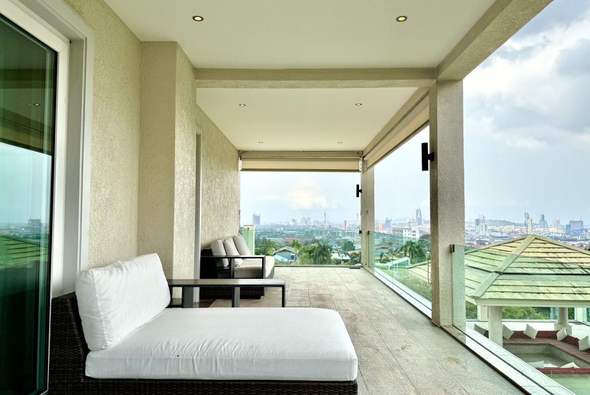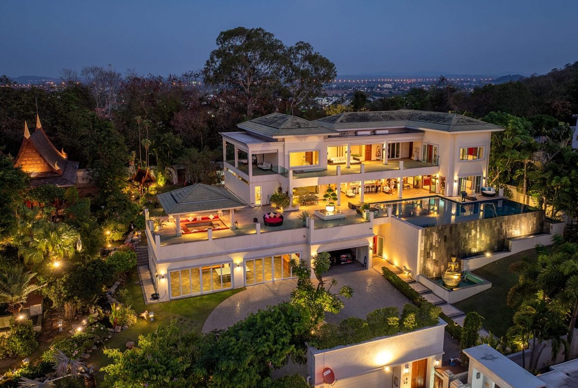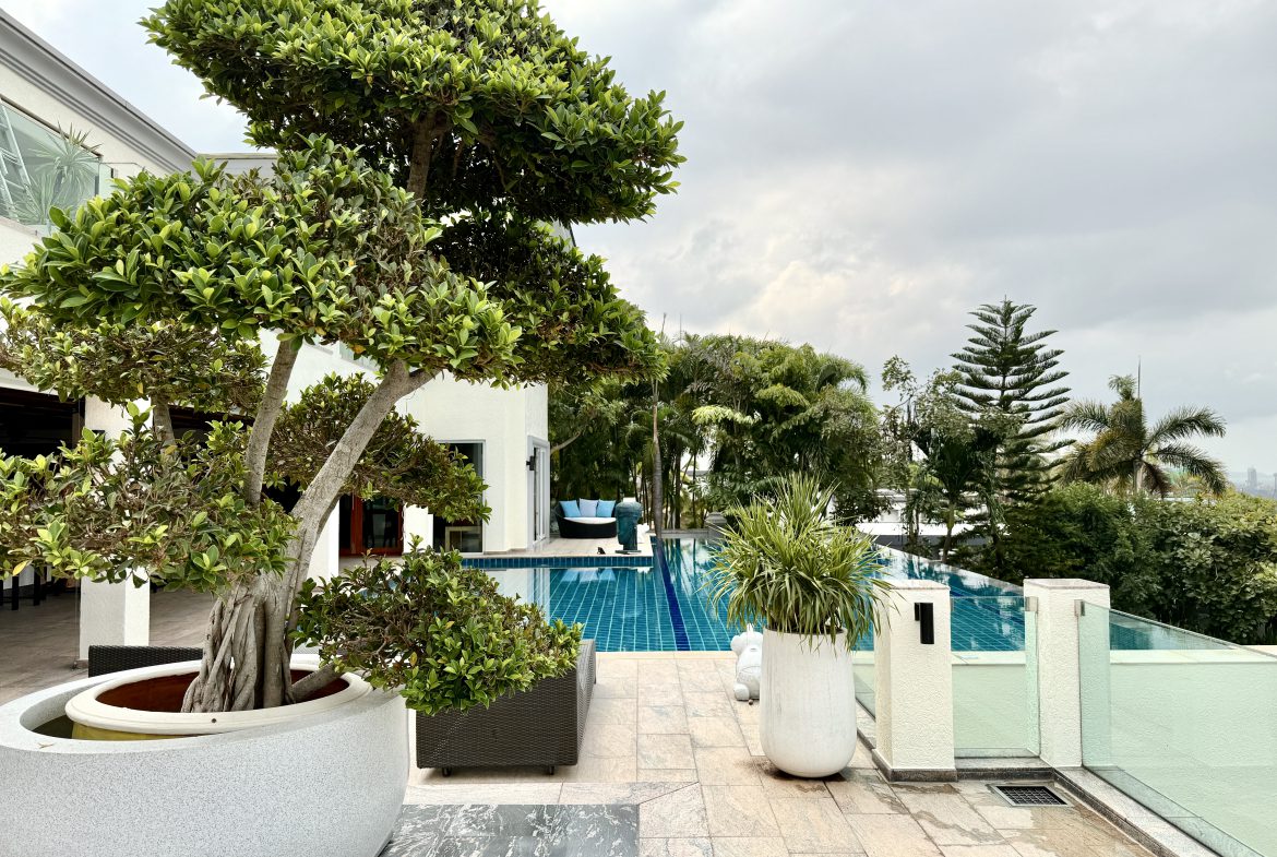 Additional features include expansive terraces, landscaped grounds, and multiple entertainment zones designed for both formal gatherings and relaxed family living. The elevated positioning ensures uninterrupted panoramic views across Pattaya Bay and the city skyline.