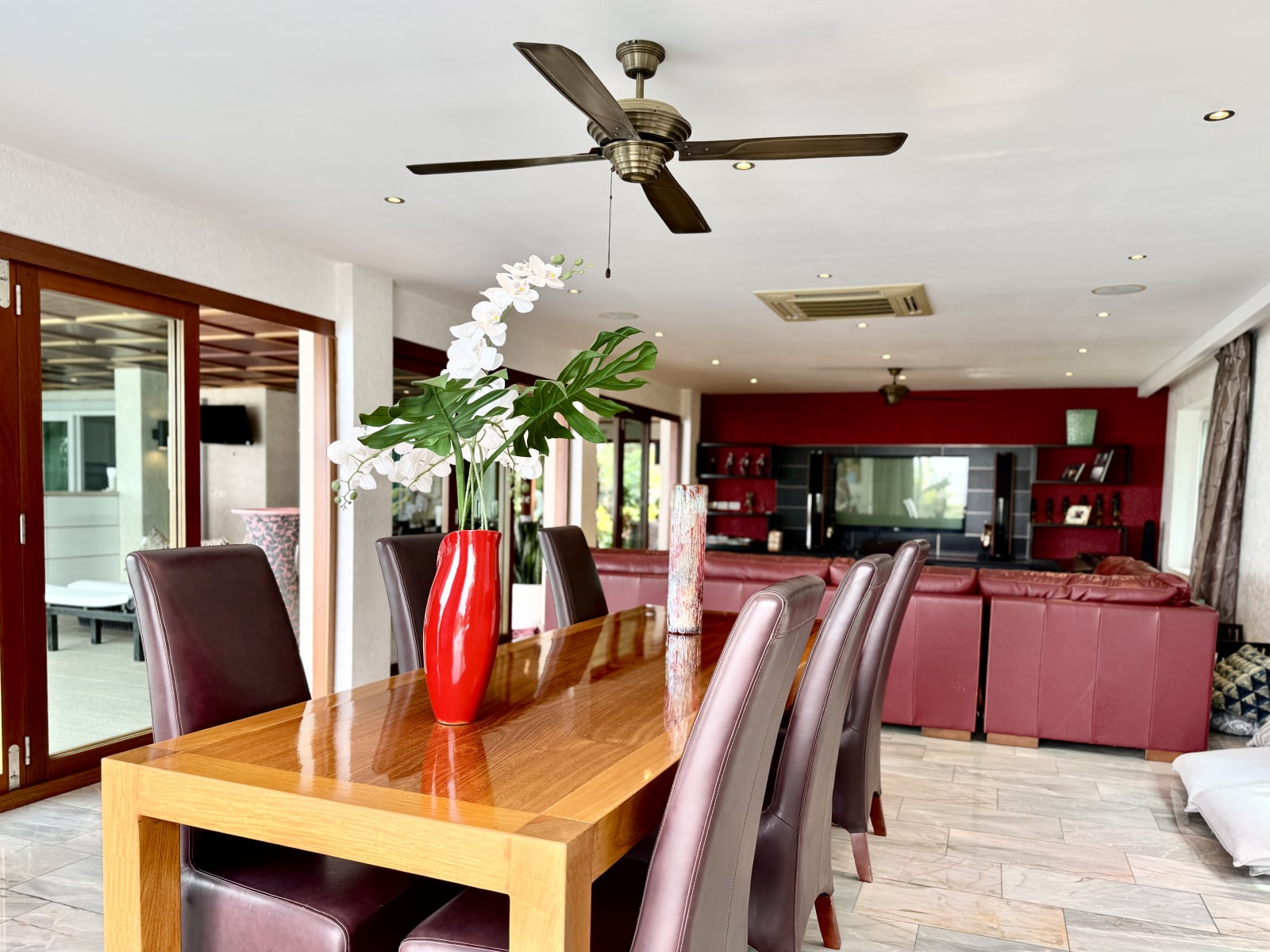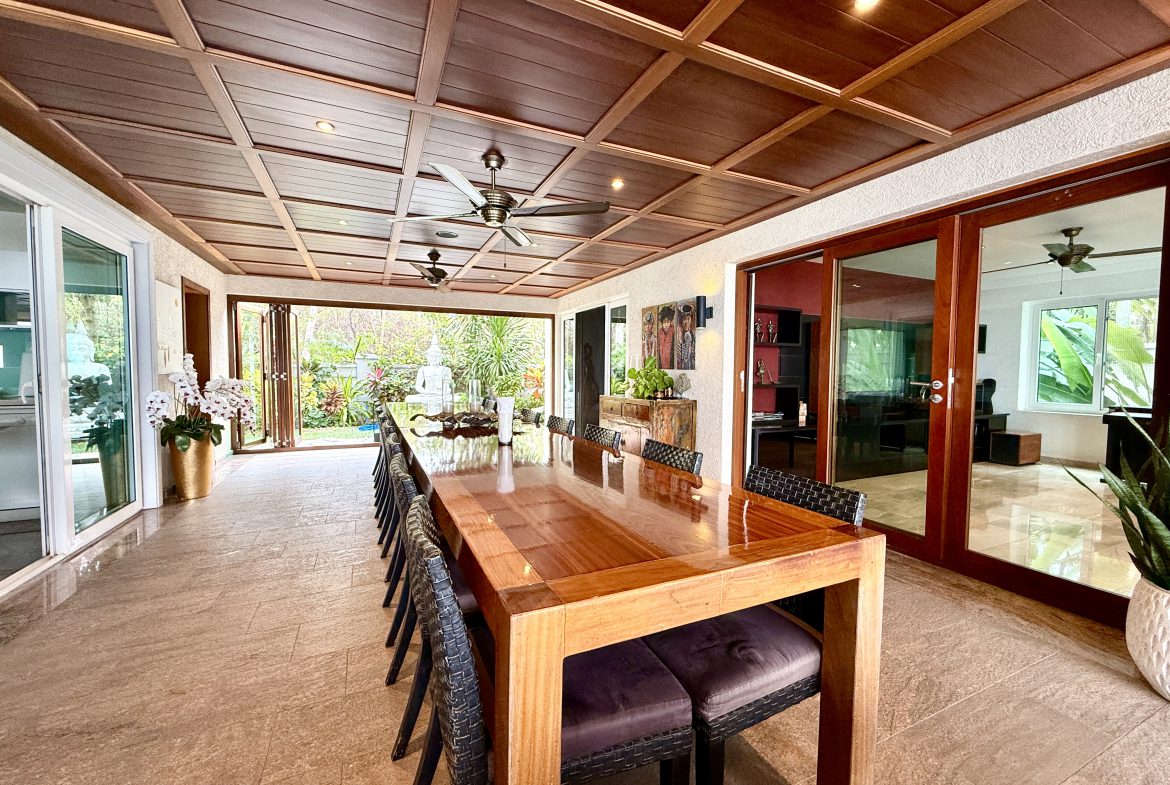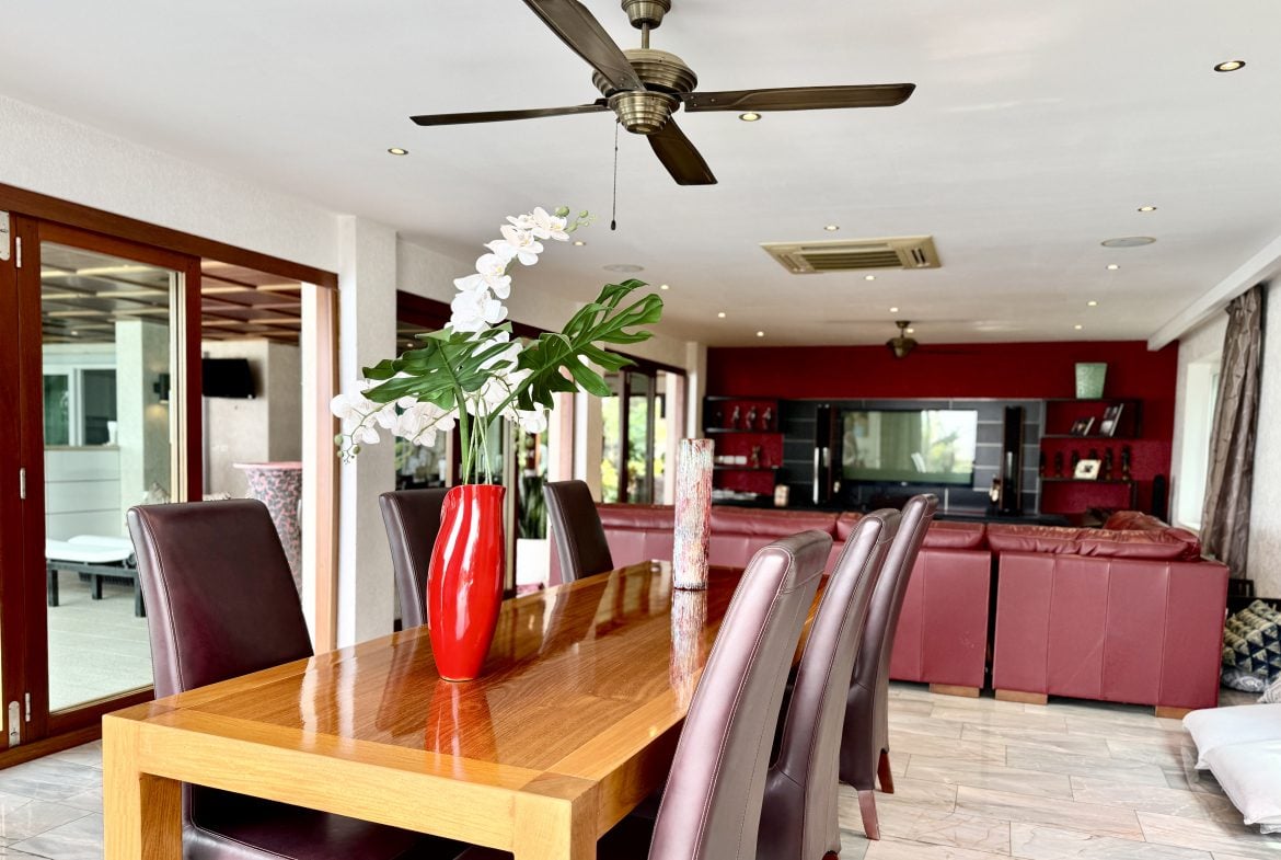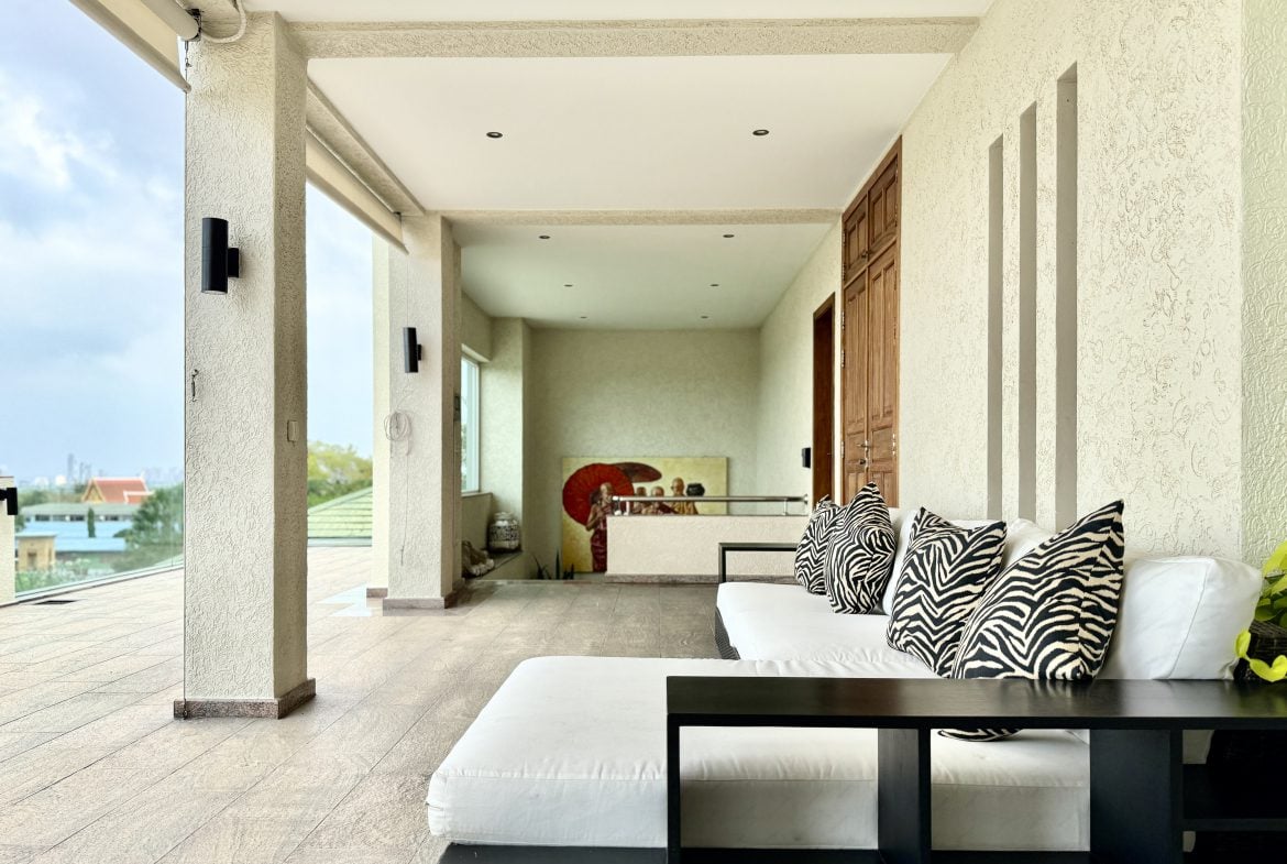 Additional features include expansive terraces, landscaped grounds, and multiple entertainment zones designed for both formal gatherings and relaxed family living. The elevated positioning ensures uninterrupted panoramic views across Pattaya Bay and the city skyline.