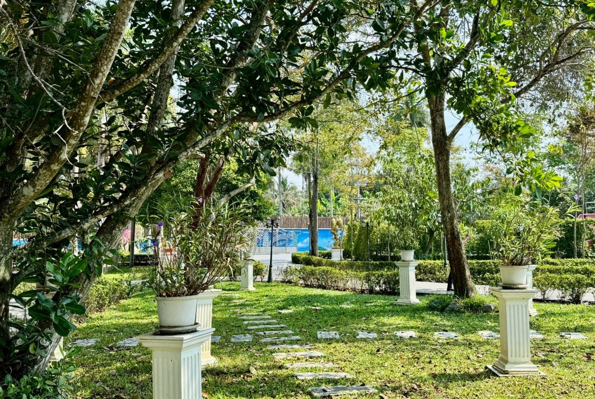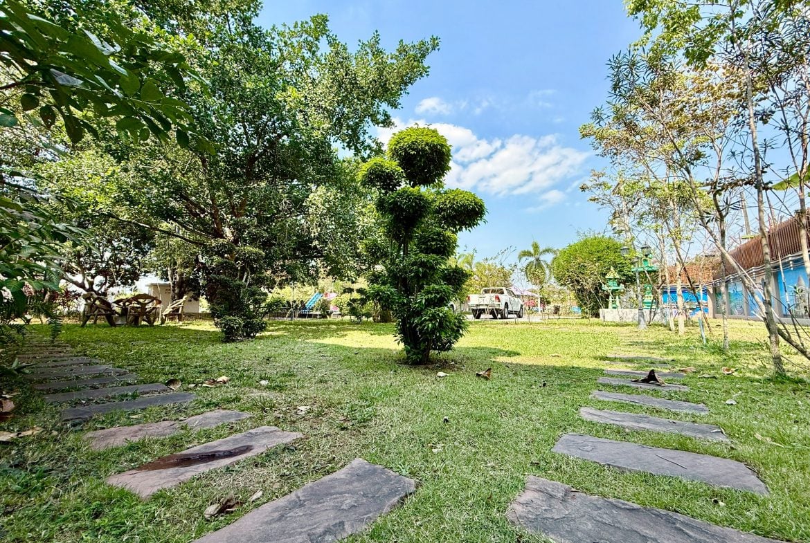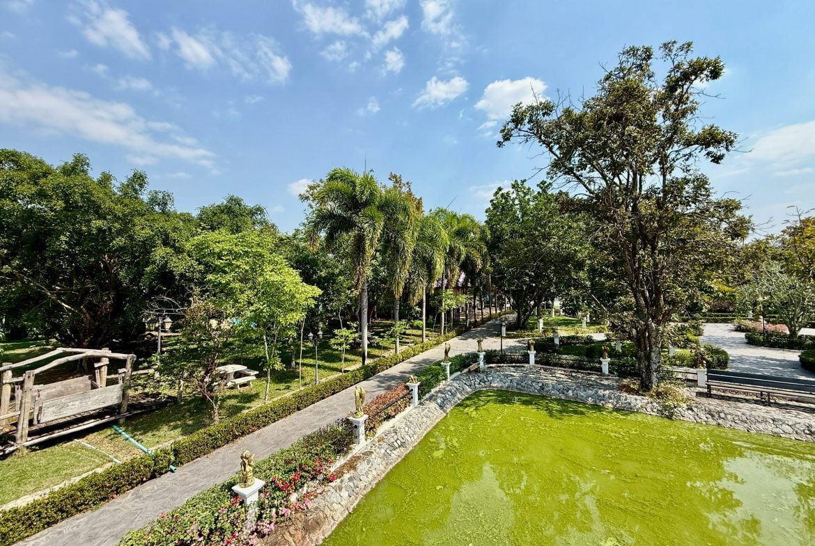 Set on an exceptionally large private land holding in the Pong area of East Pattaya, this resort-style estate offers privacy, scale, and flexibility rarely found in the local market. The property comprises two separate single-storey residences, surrounded by landscaped gardens and designed for exclusive family living, retreat use, or a long-term private residence.