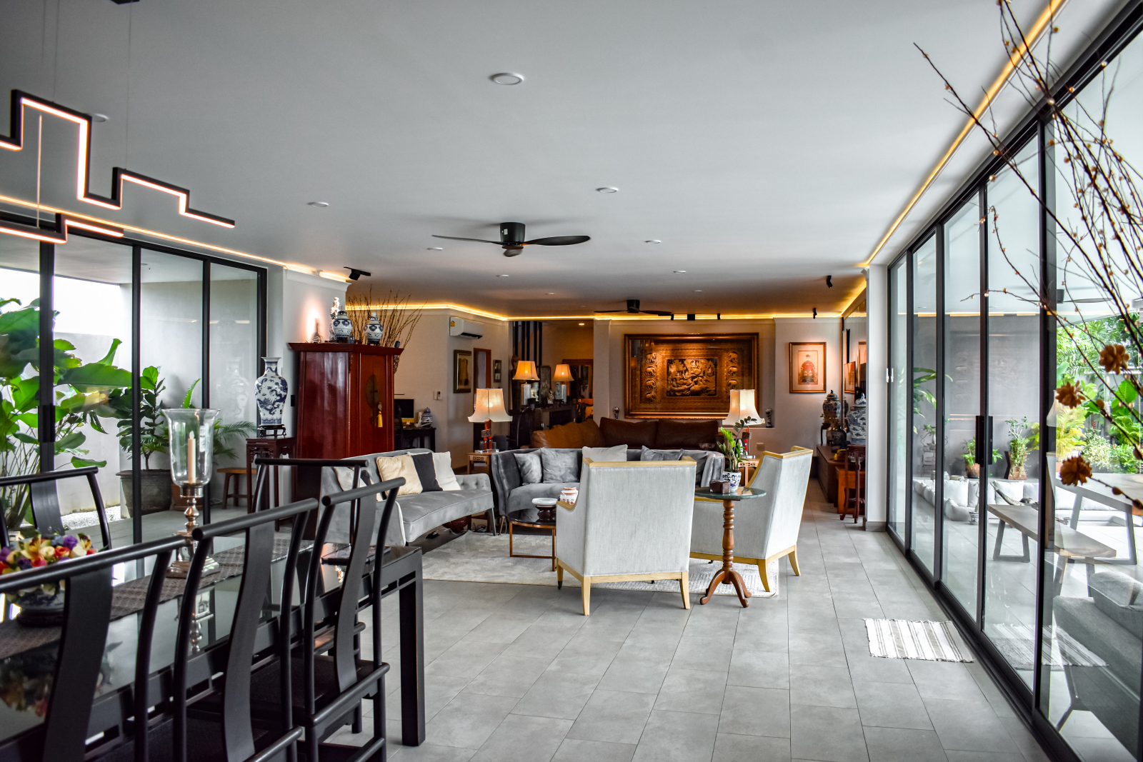 Experience smart, stylish living on an expansive 𝟖𝟳𝟱 𝗦𝗤.𝗠. landplot, where modern contemporary interiors meet tropical architectural charm.