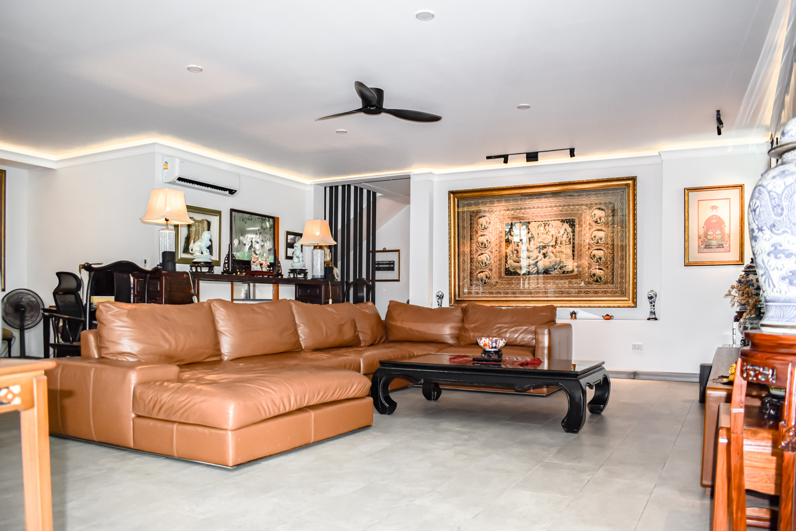 Inside, discover 𝗰𝗹𝗲𝗮𝗻 𝗹𝗶𝗻𝗲𝘀, a 𝗻𝗲𝘂𝘁𝗿𝗮𝗹 𝗽𝗮𝗹𝗲𝘁𝘁𝗲, and 𝗵𝗶𝗴𝗵-𝗲𝗻𝗱 𝗳𝗶𝗻𝗶𝘀𝗵𝗲𝘀 blending marble, wood, and gold-accented furnishings. A sleek kitchen with integrated appliances and subtle Thai artistic touches brings refined personality.