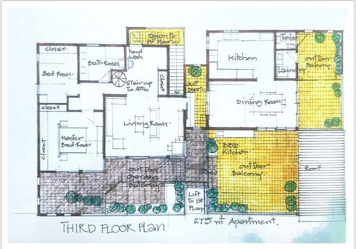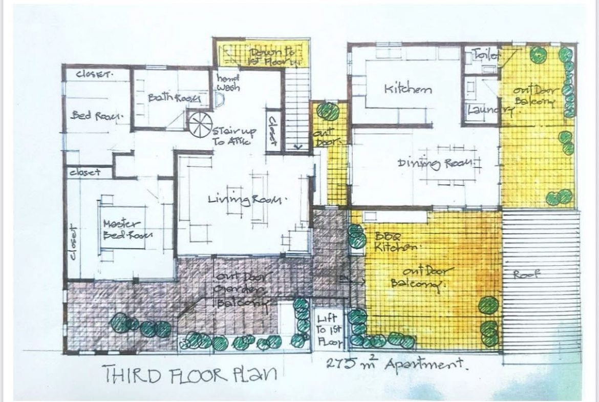 Built on 100 sq.wah (divided into 2 title deeds), the property spans 3 floors: