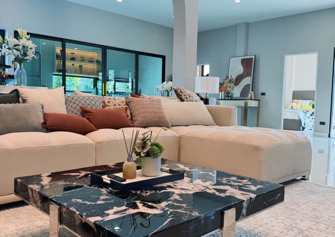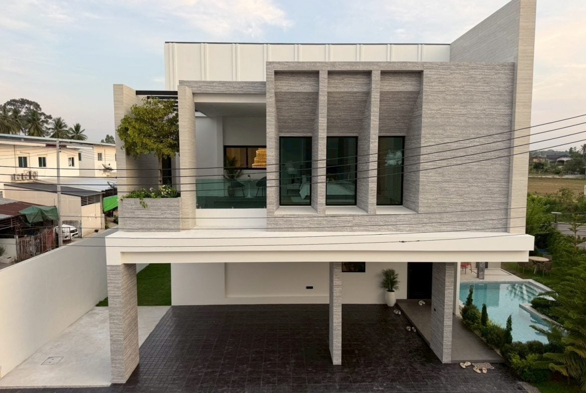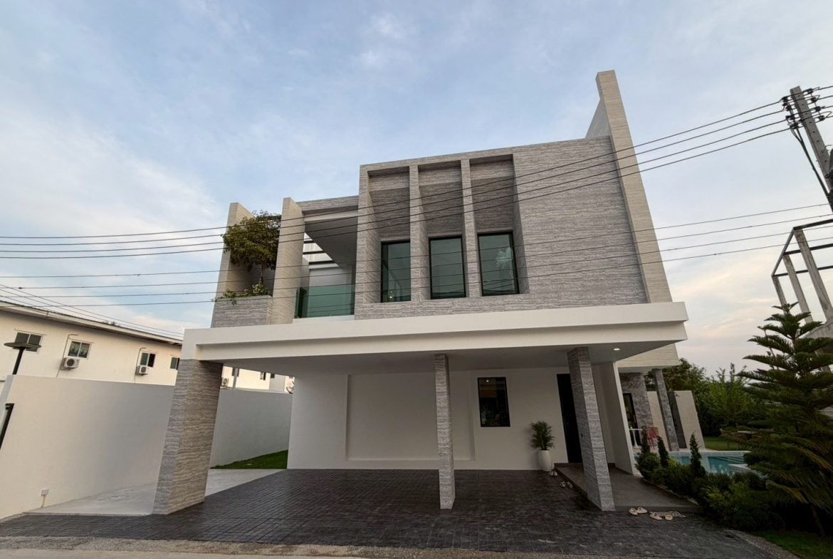 Brand-new luxury pool villa set on the largest plot in the project, offering expansive usable space, modern design, and full furnishings. Completed and ready for immediate transfer, ideal for family living or long-term investment in a convenient Pattaya location.