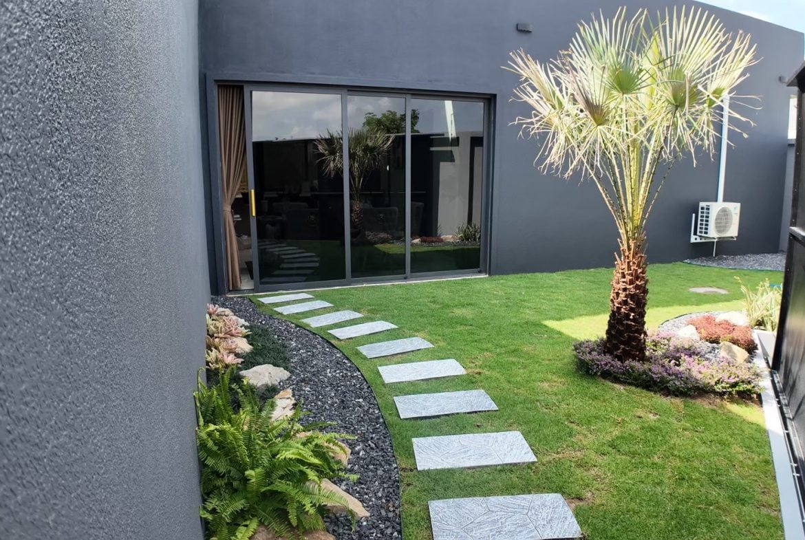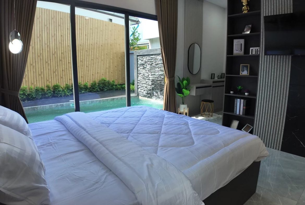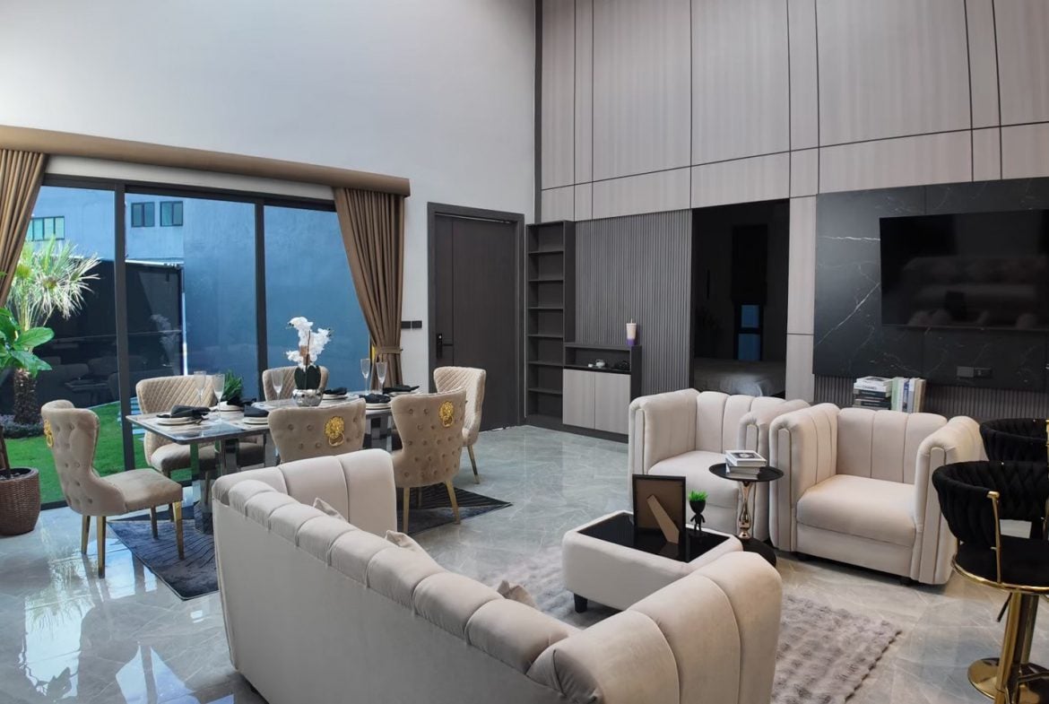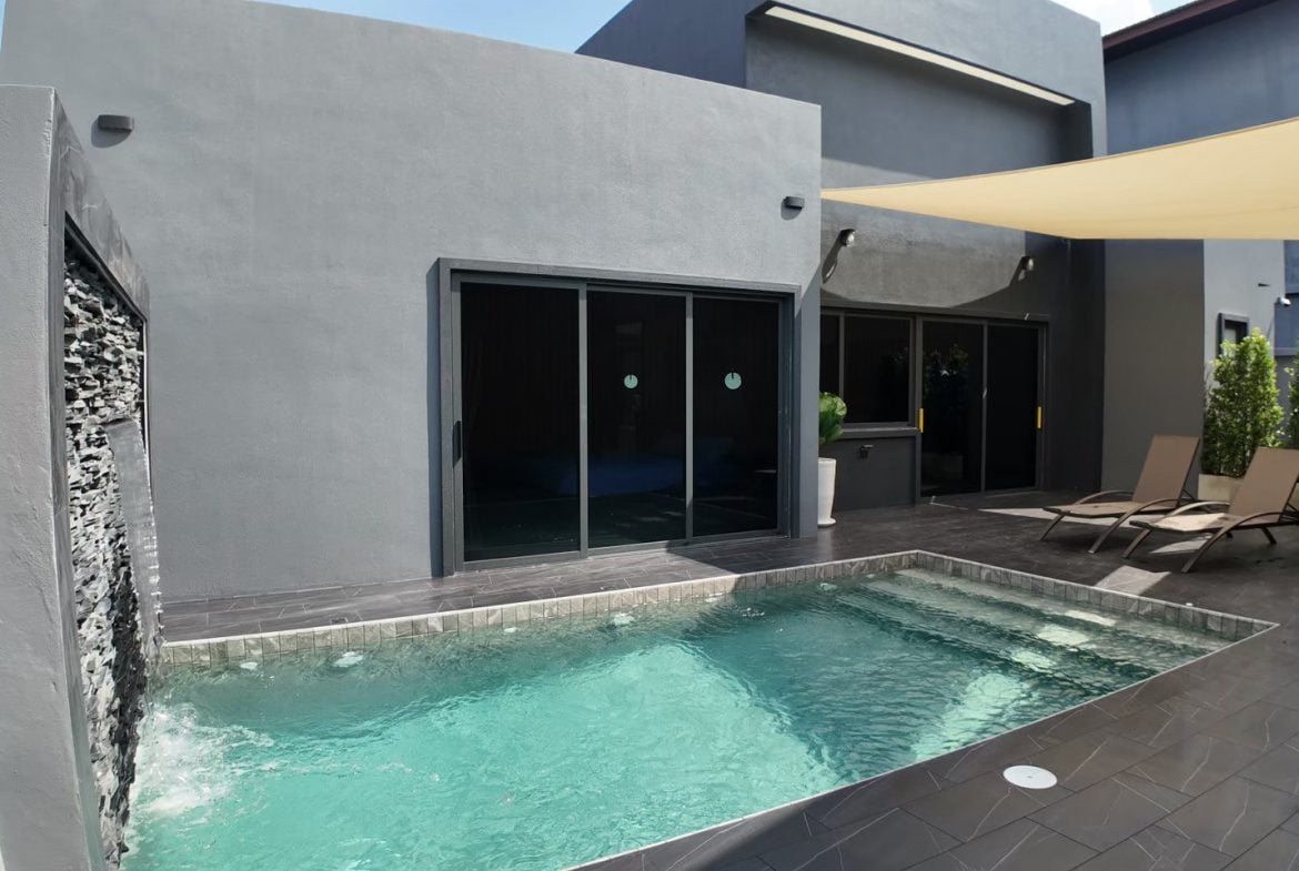 Resale pool villas in a low-density residential project in Pong, East Pattaya, designed with a modern minimalist concept and practical open-plan living. These single houses offer generous internal space, private pools, and a layout well suited for comfortable family living or long-term residential ownership.