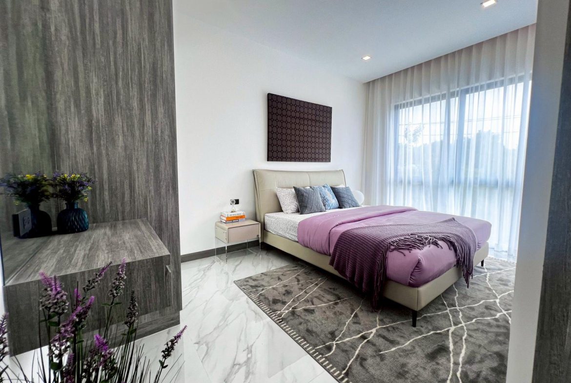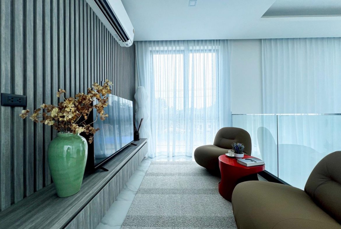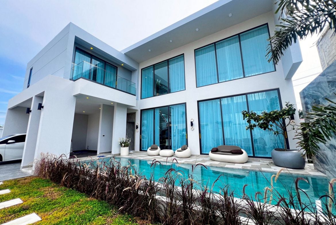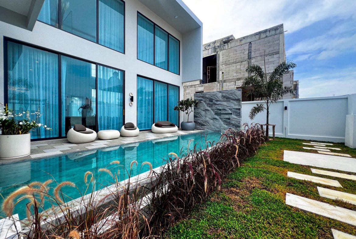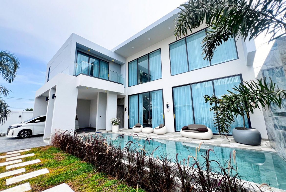 A newly built modern pool villa offering privacy, comfort, and clean architectural design in one of Bangsaray’s most peaceful residential areas. With premium built-ins, generous interior space, and a calm natural setting, this home is ideal for families or buyers seeking a stylish retreat close to the beach and lifestyle conveniences.