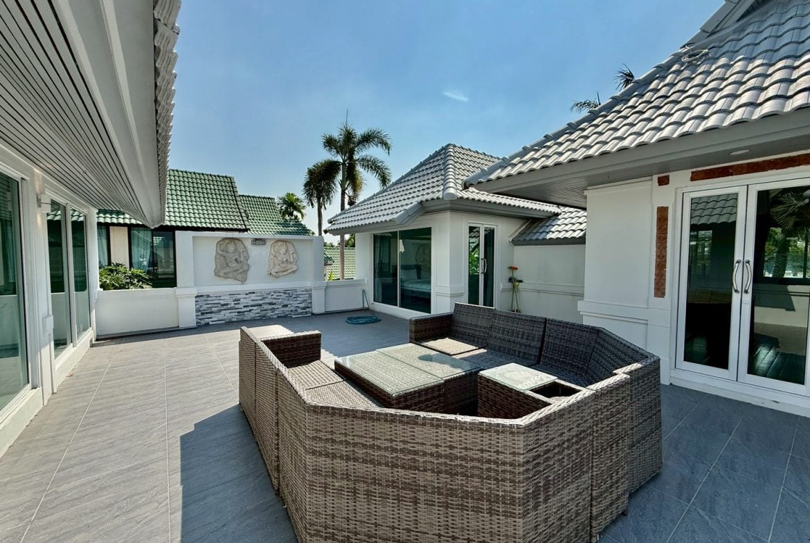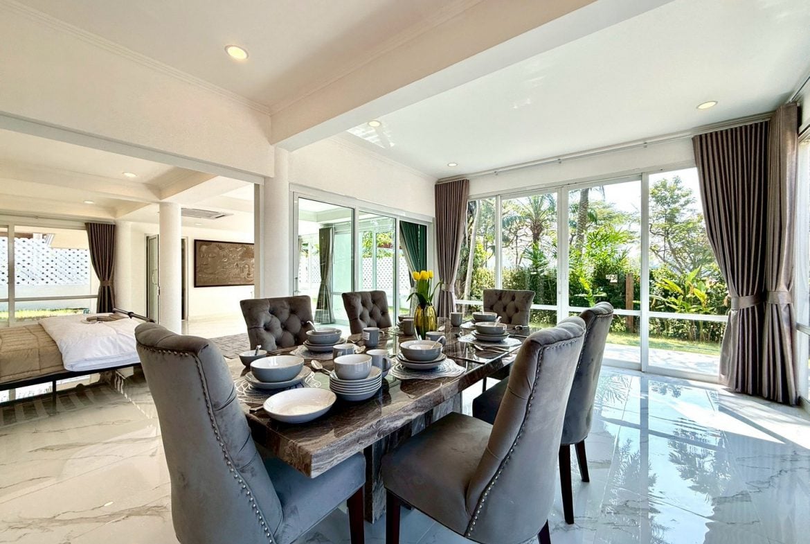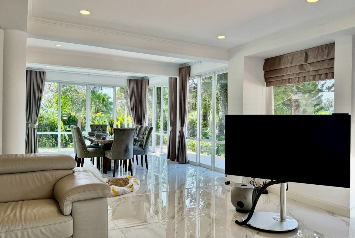Set within the quiet, green estate of Phoenix Golf Course, this spacious family villa offers a relaxed resort-style lifestyle with total privacy. Surrounded by golf course views, fresh breezes, and a secure gated environment, the home is ideal for long-term residents seeking space, tranquility, and quality living. With bright interiors, large outdoor areas, and convenient access to Huay Yai cafés, Highway 331, and routes toward Jomtien Beach, this property delivers both comfort and excellent daily convenience.