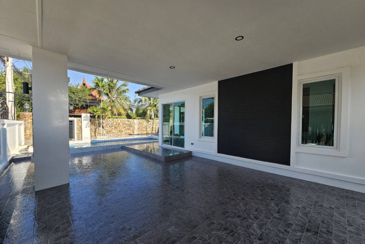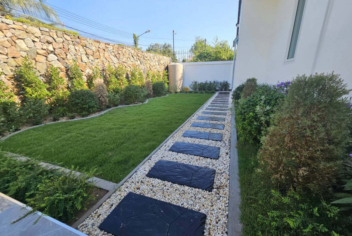 This well-positioned corner house offers enhanced privacy with its side garden and open layout. The private swimming pool is set within a neatly maintained garden, creating a relaxed outdoor space suitable for family living and everyday leisure. The house comes fully furnished with built-in furniture, providing a ready-to-move-in condition and a practical layout that supports comfortable long-term residence. The corner positioning allows for better airflow, natural light, and a more open living feel compared to standard internal plots.