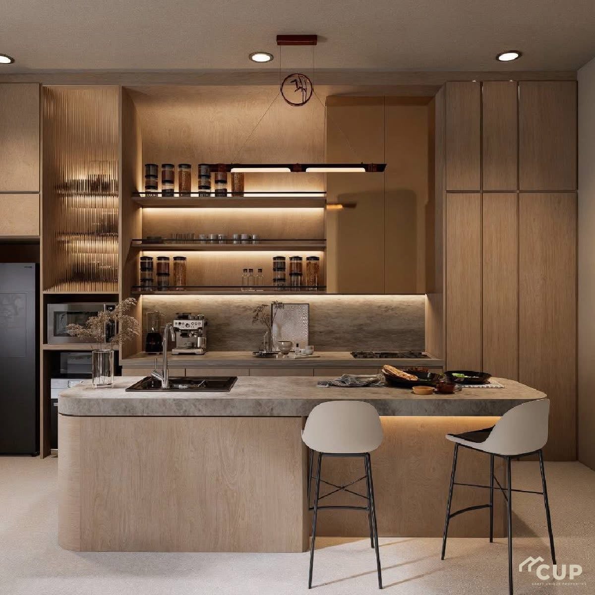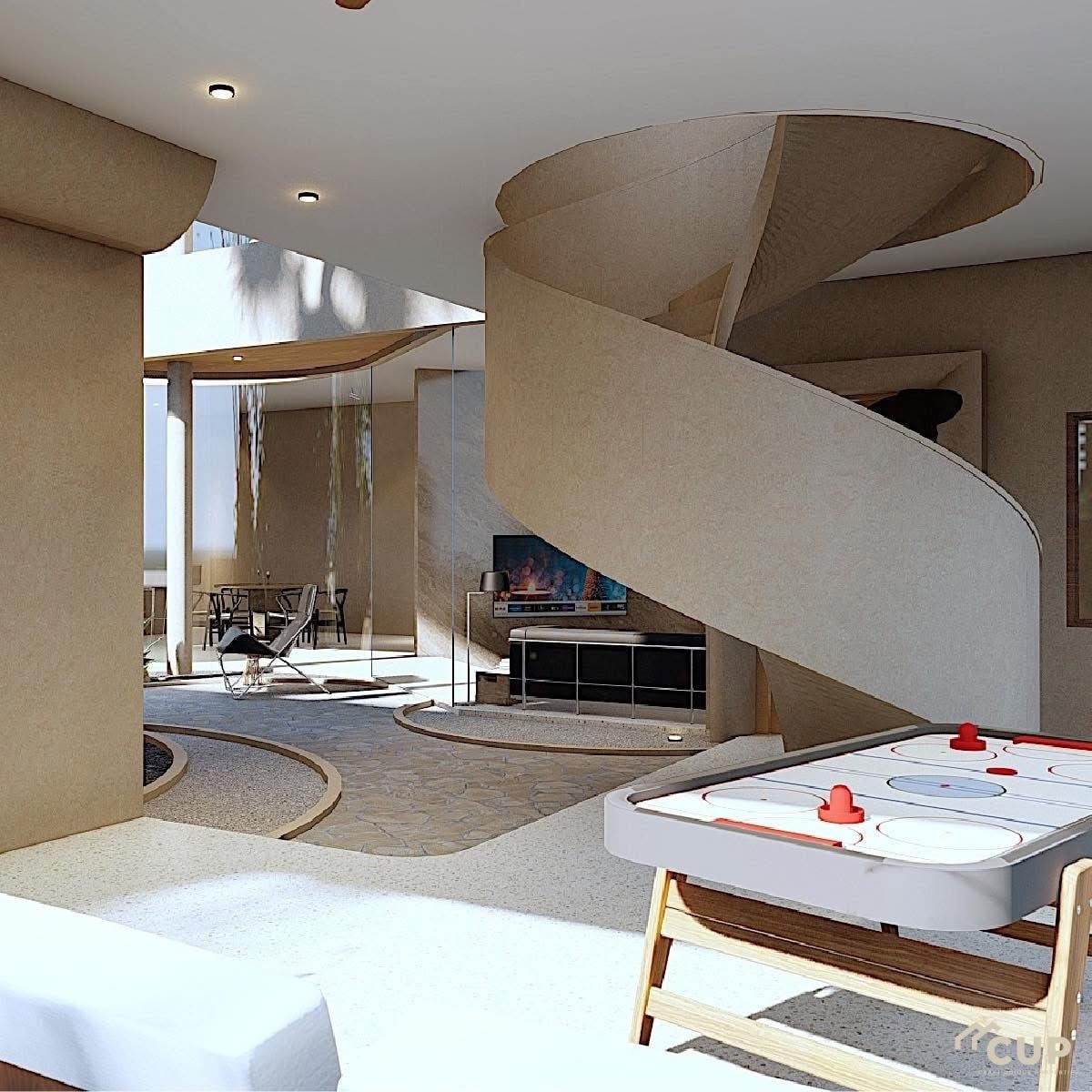 The Canvas Jomtien blends tropical resort aesthetics with modern residential comfort. Curved architectural elements soften the structure while large windows and open living areas enhance natural light and airflow.