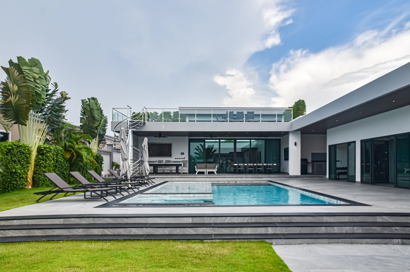 Indulge in a MasterChef-style kitchen, smart home access with facial & fingerprint entry, a private cinema, fully-equipped gym, Turkish bath, and Swedish sauna. Complete with EV-ready double garage, high-speed fiber internet, and HD CCTV, this fully furnished home is ideal for lavish living or premium investment. Move in and embrace Pattaya luxury at its finest. ✨