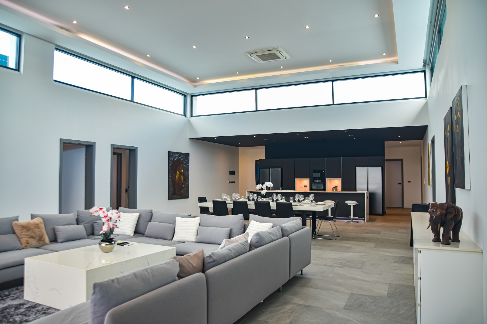 Experience next-level luxury in the heart of Pattaya with this ultra-modern 6-bedroom, 7-bathroom residence, set on a sprawling 1,050 SQ.M. land plot with 845 SQ.M. of sleek living space. Crafted with German engineering, the home boasts standout features like a sky-lit atrium, ocean-view rooftop terrace, and a 12-meter marble pool with Jacuzzi 🌊.